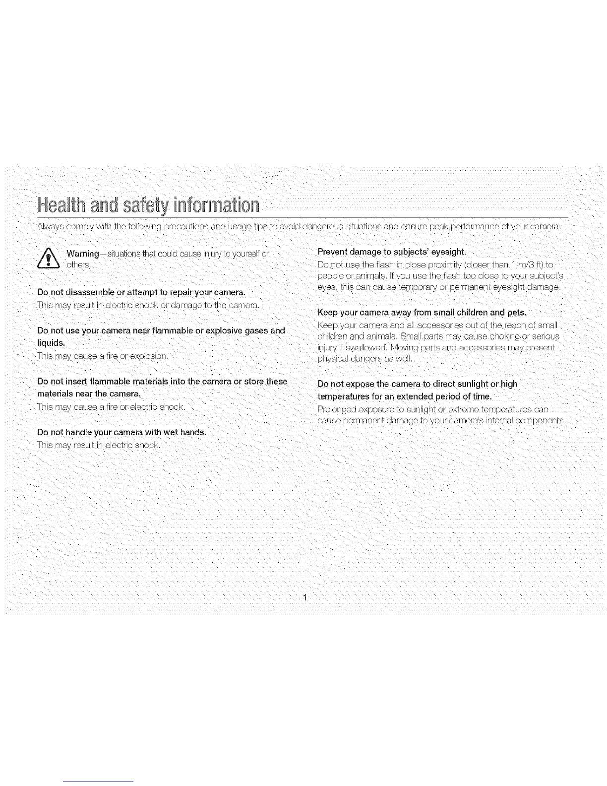 Do not disassemble or attempt to repair your camera.