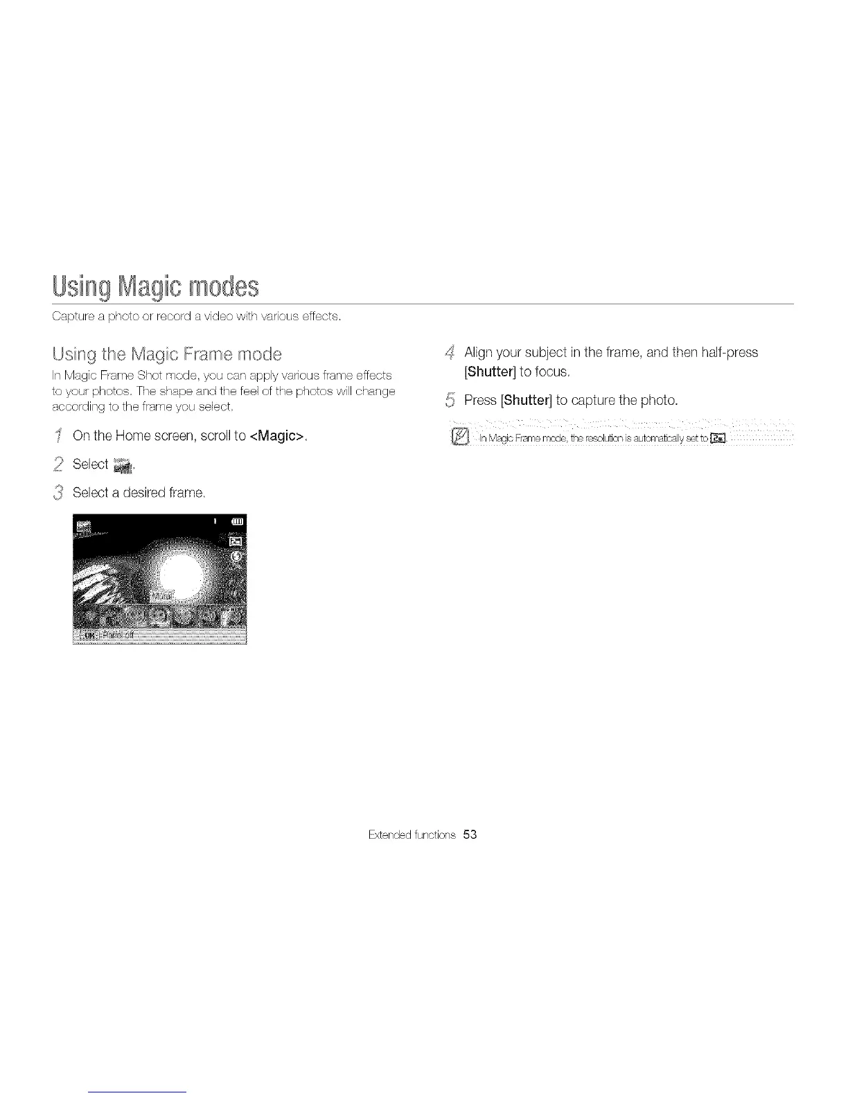 Using the Magic Frame mode