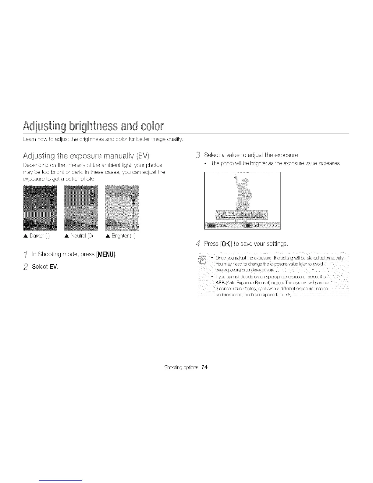 • Thephotowillbe brighterasthe exposurevalueincreases.