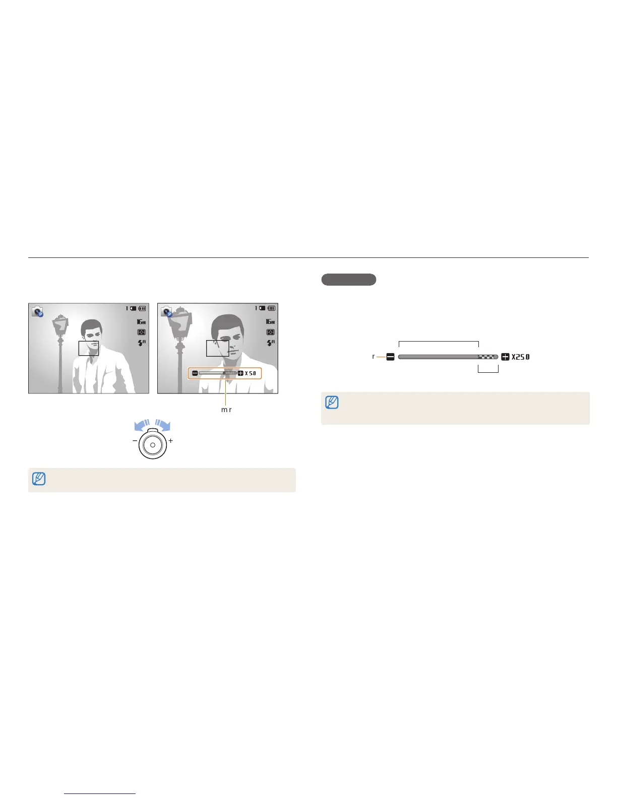 When you rotate the zoom button, the zoom ratio shown on the screen may