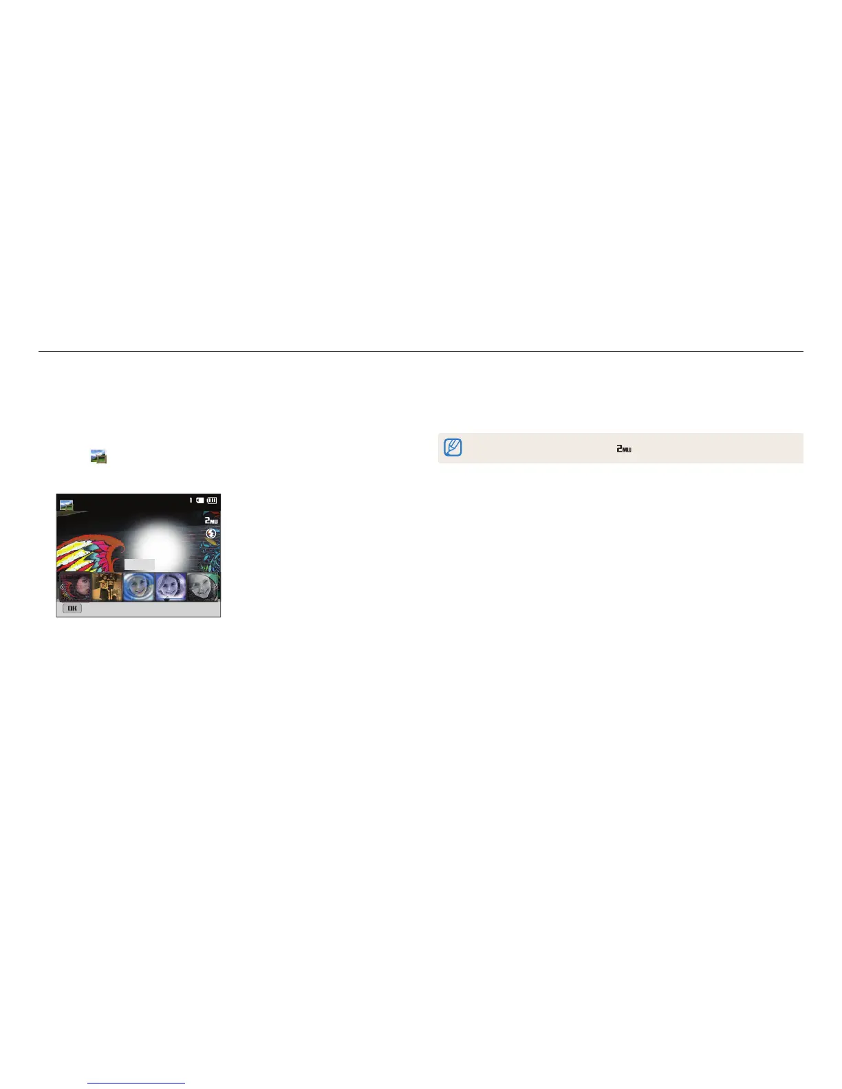 In Magic Frame mode, you can apply various frame eects to your photos. The