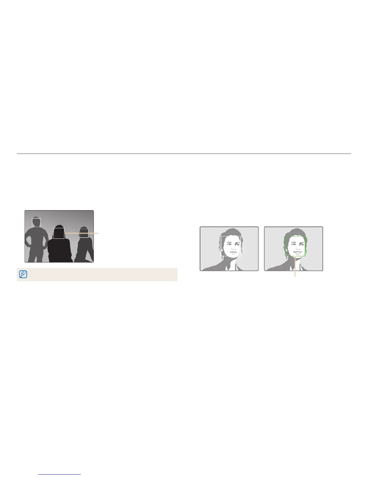 If you use Face Detection options, your camera can automatically detect a human face. When you focus on a human face, the camera adjusts the exposure automatically. Use