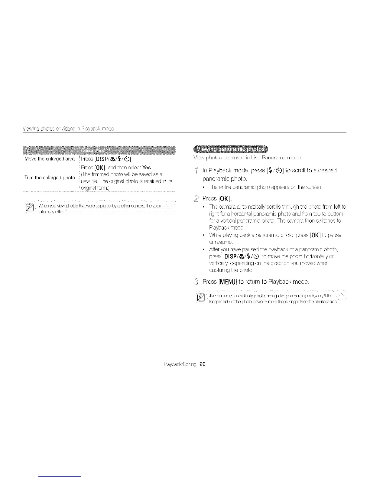 • While playing back a panoramic photo, press [OK] to pause