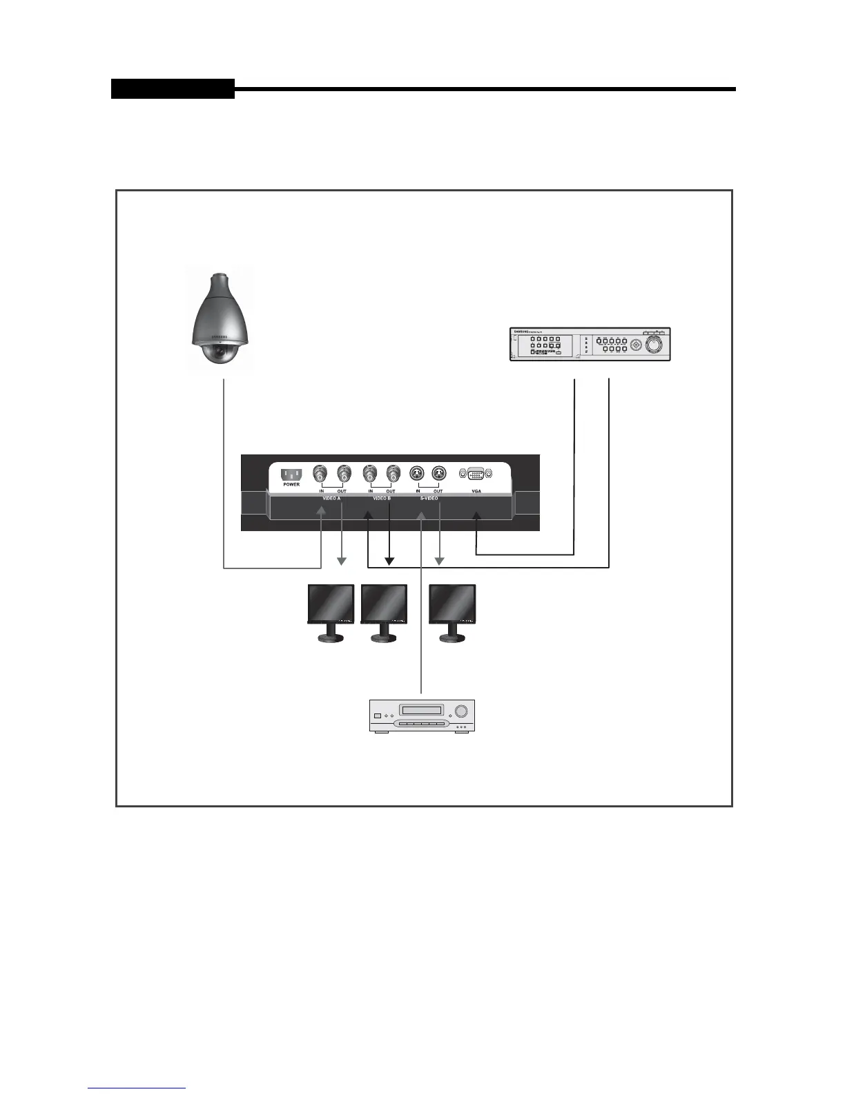 The product can be connected to an external device such as Camera, DVR,VCR, External Monitor, etc.
