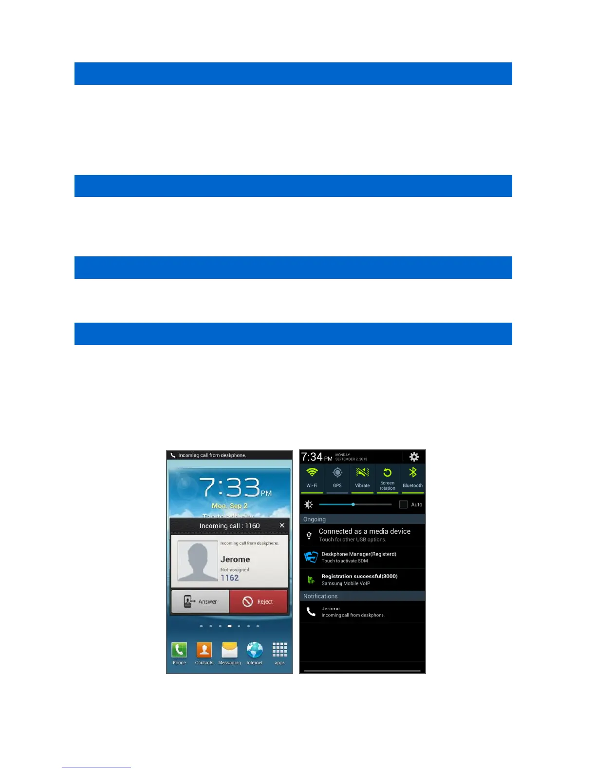 When you accept a call, it is connected through the Samsung Mobile VoIP app.