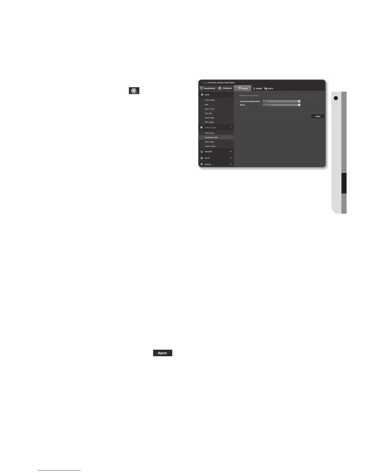 Can flip images horizontally through <DPTZ setup>. Available in Wall-mounted