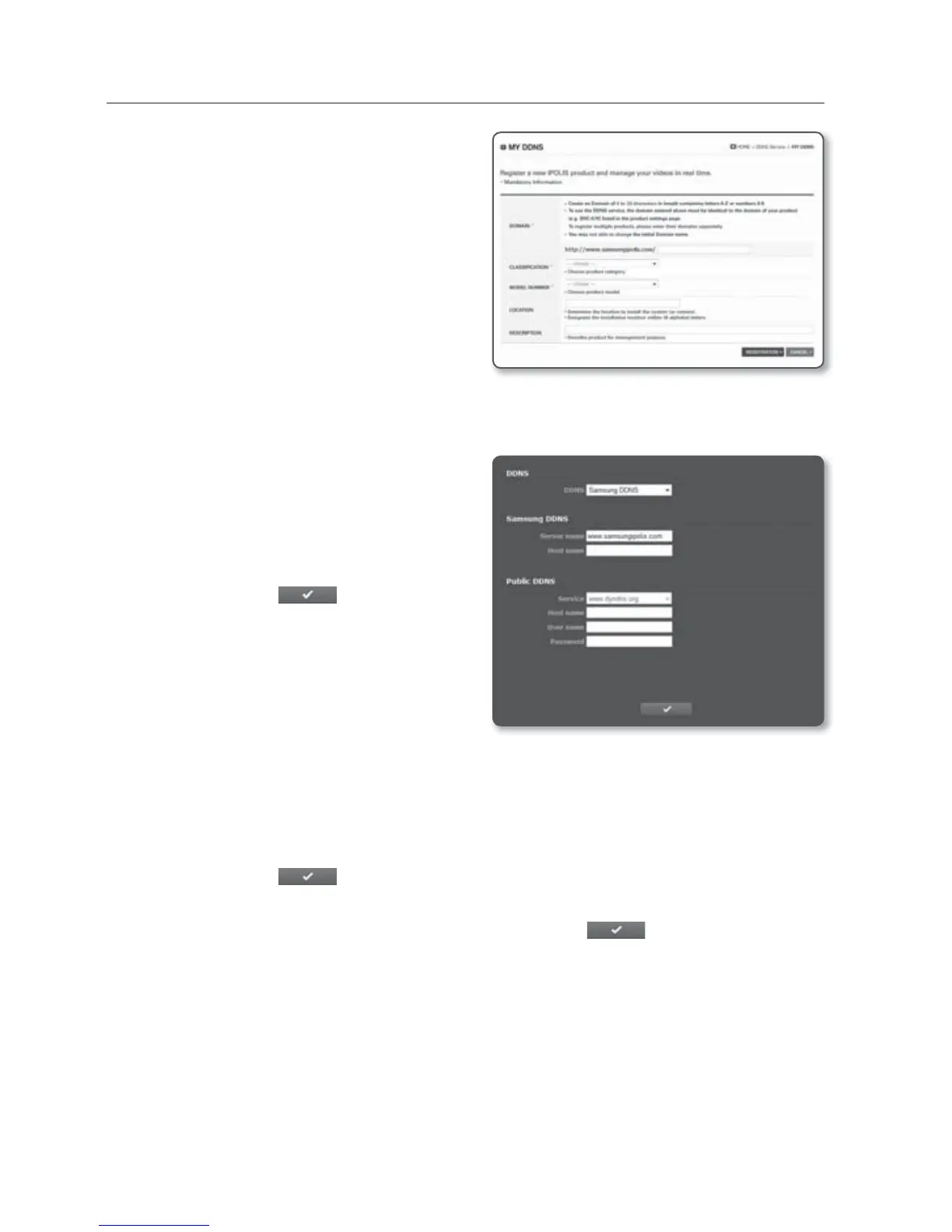 1. Open the DDNS settings page and select <Public DDNS> for <DDNS>.