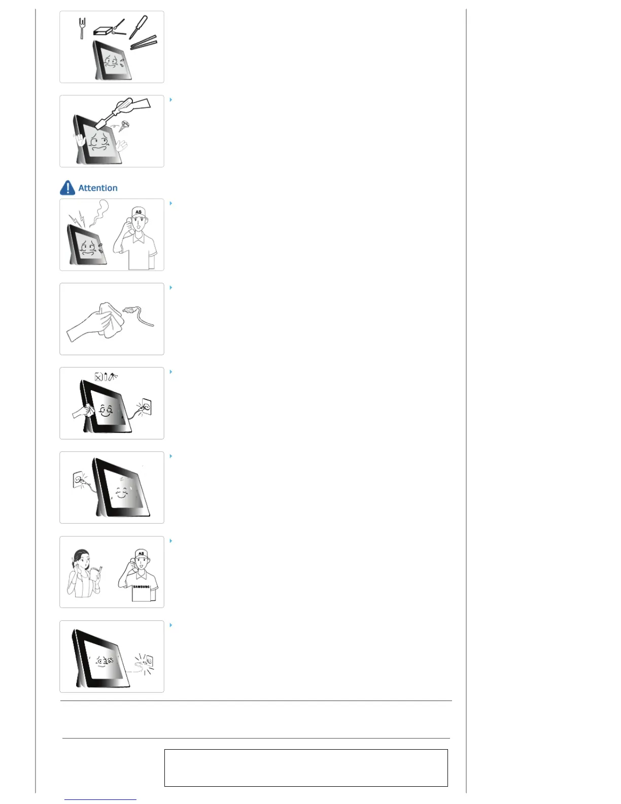 z Failing to disconnect the power plug may cause electric shock or fire.
