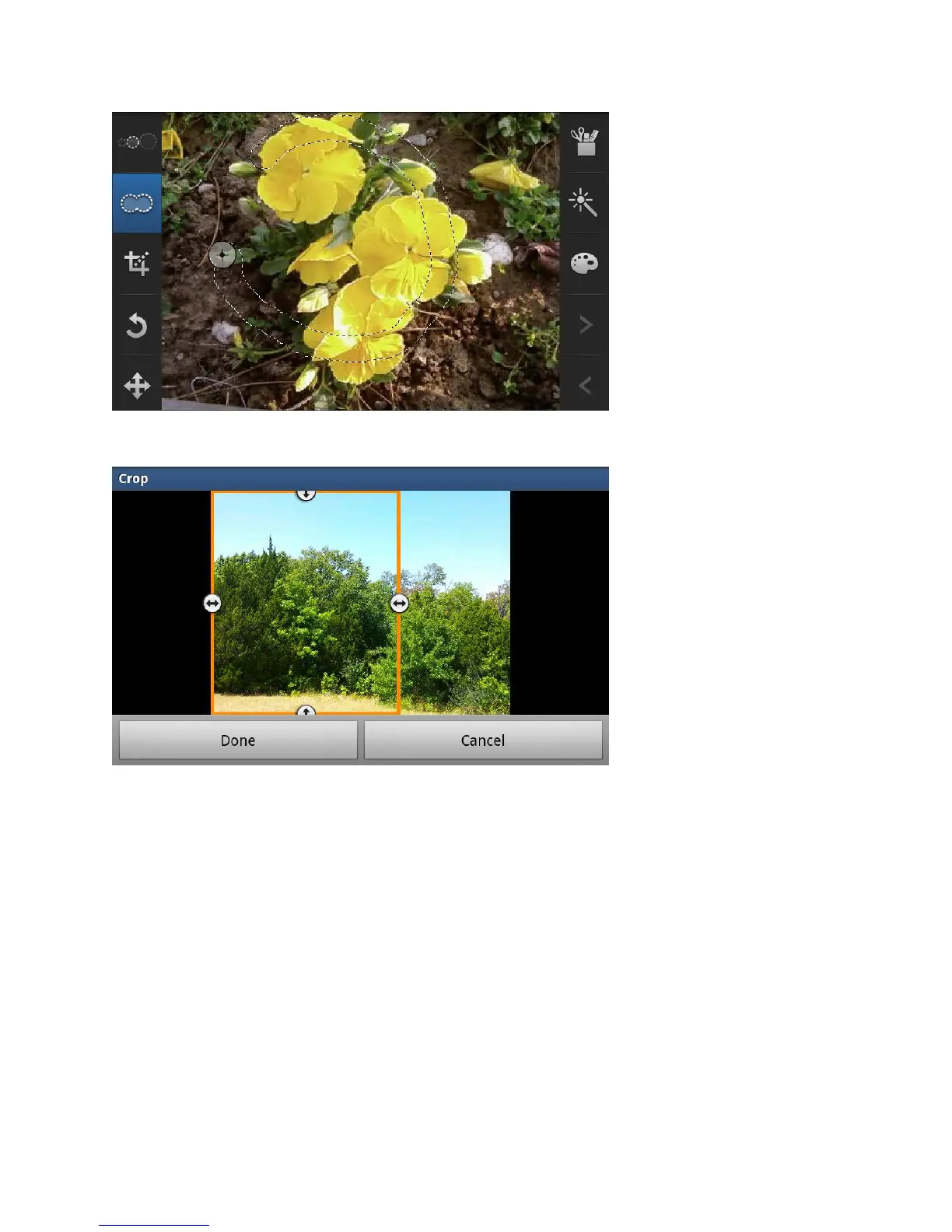 Crop: allows you to crop (cut-out) an area of a photo.