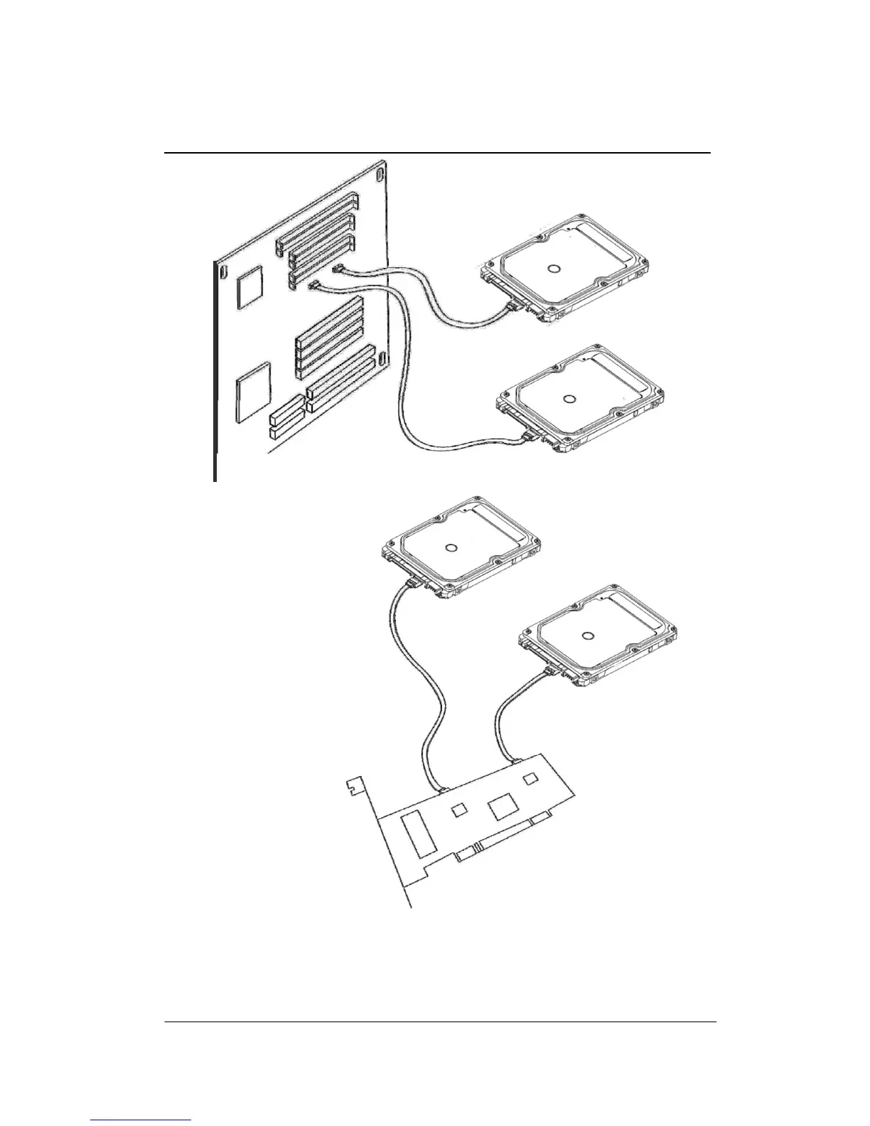 Figure 4-5 illustrates Connectivity of SATA to drives. It can be used with a SATA host adapter (lower