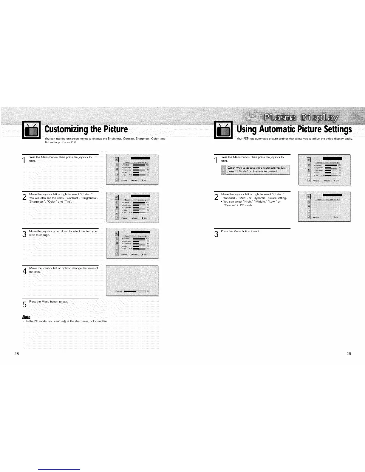 Your PDP has automatic picture settings that allow you to adjust the video display easily.