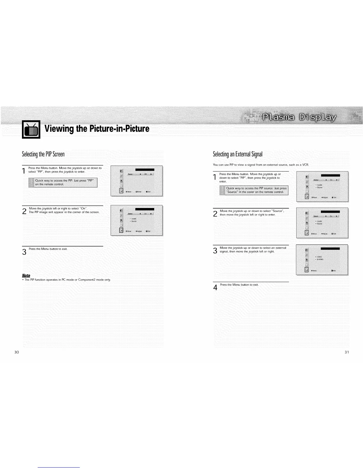 • /he PIP function operates in PC mode or Component2 mode only.