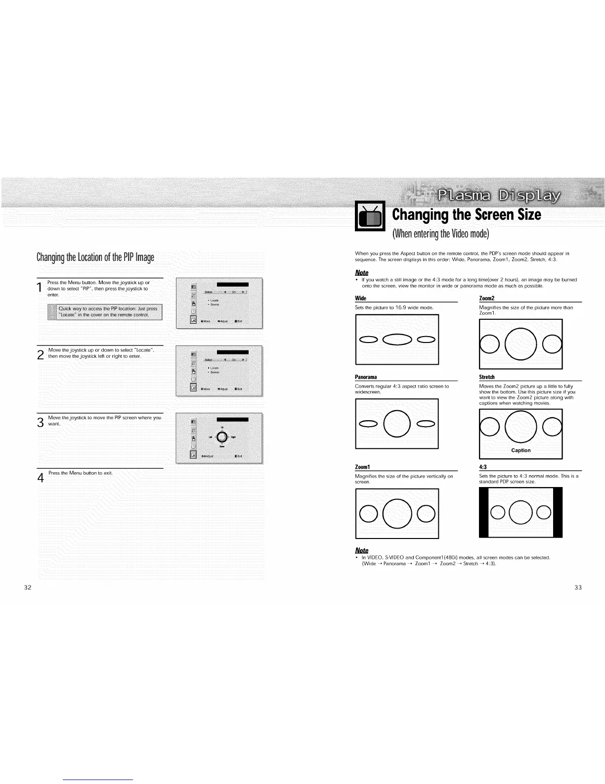 When you press the Aspect button on the remote control, the PDP's screen mode should appear in
