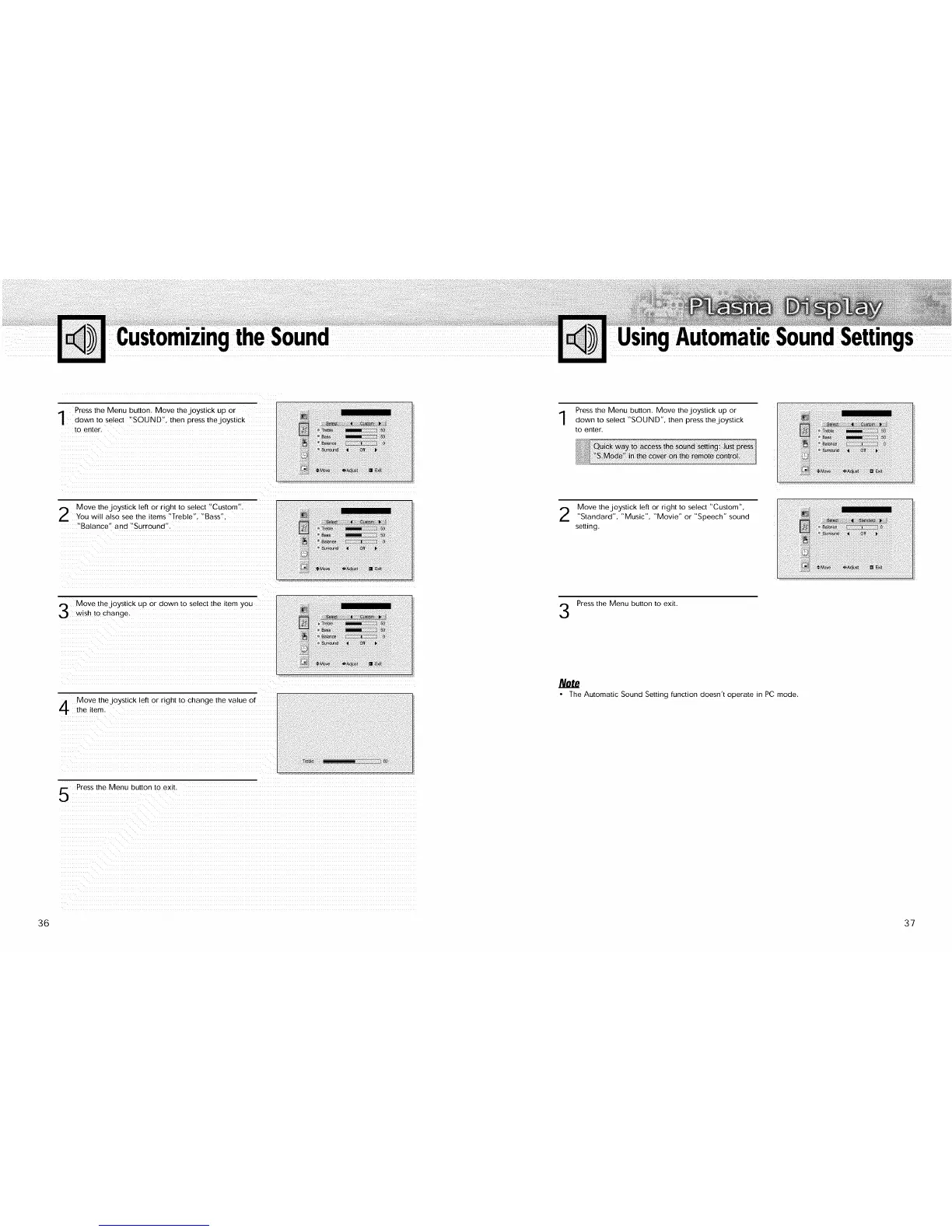 • The Automatic Sound Setting function doesn't operate in PC mode.