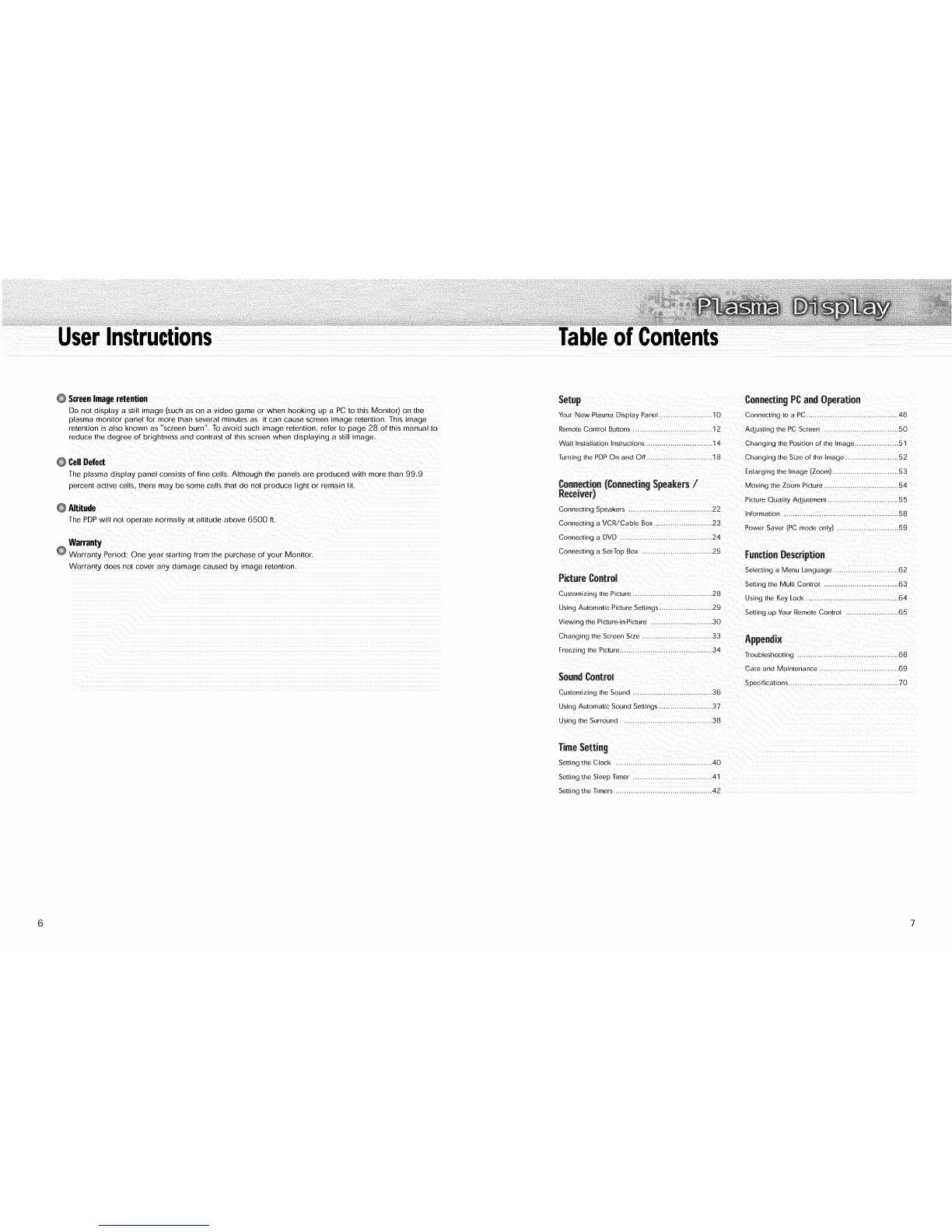 plasma monitor panel for more than several minutes as it can cause screen image retention. This image