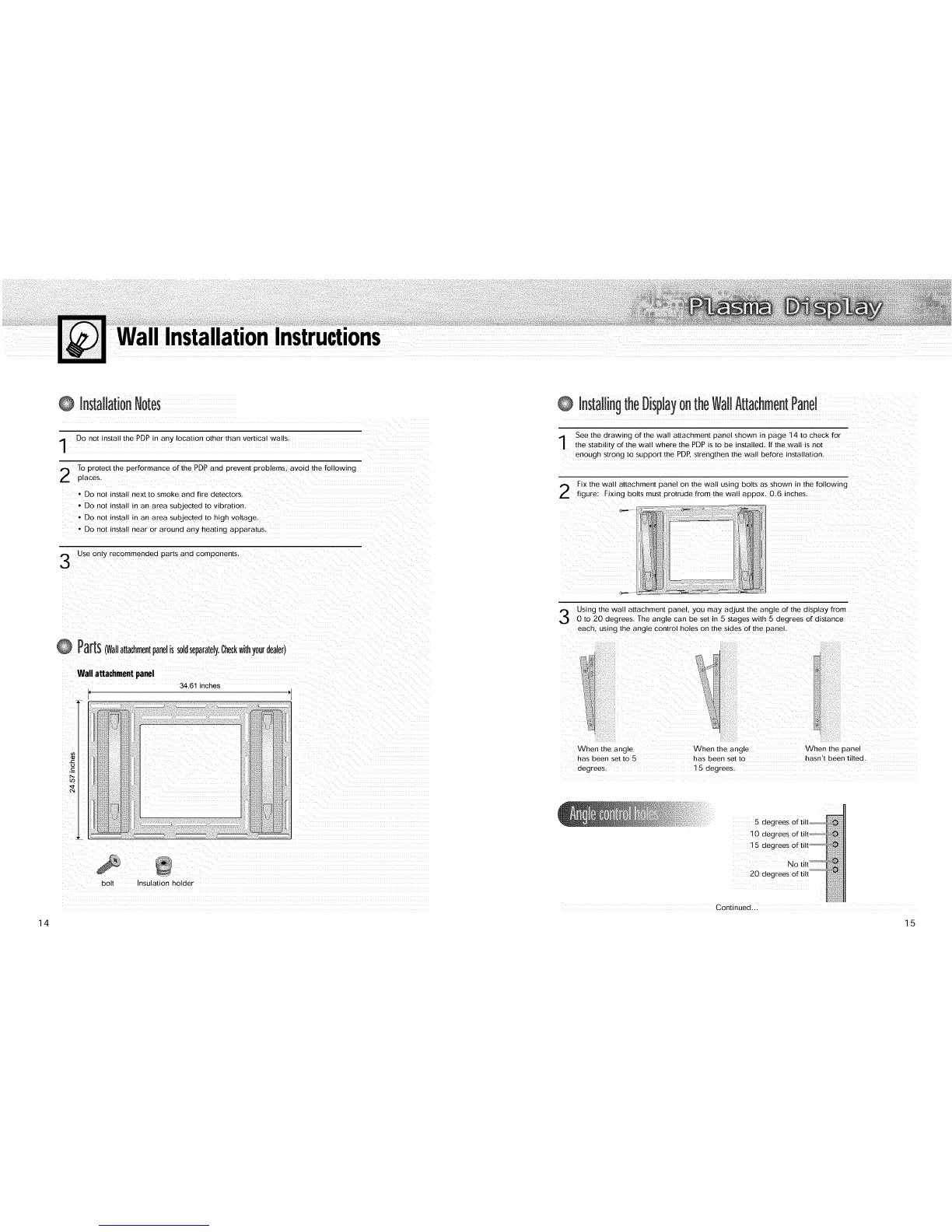 "1 See the drawing of the wall attachment panel shown in page 14 to check for