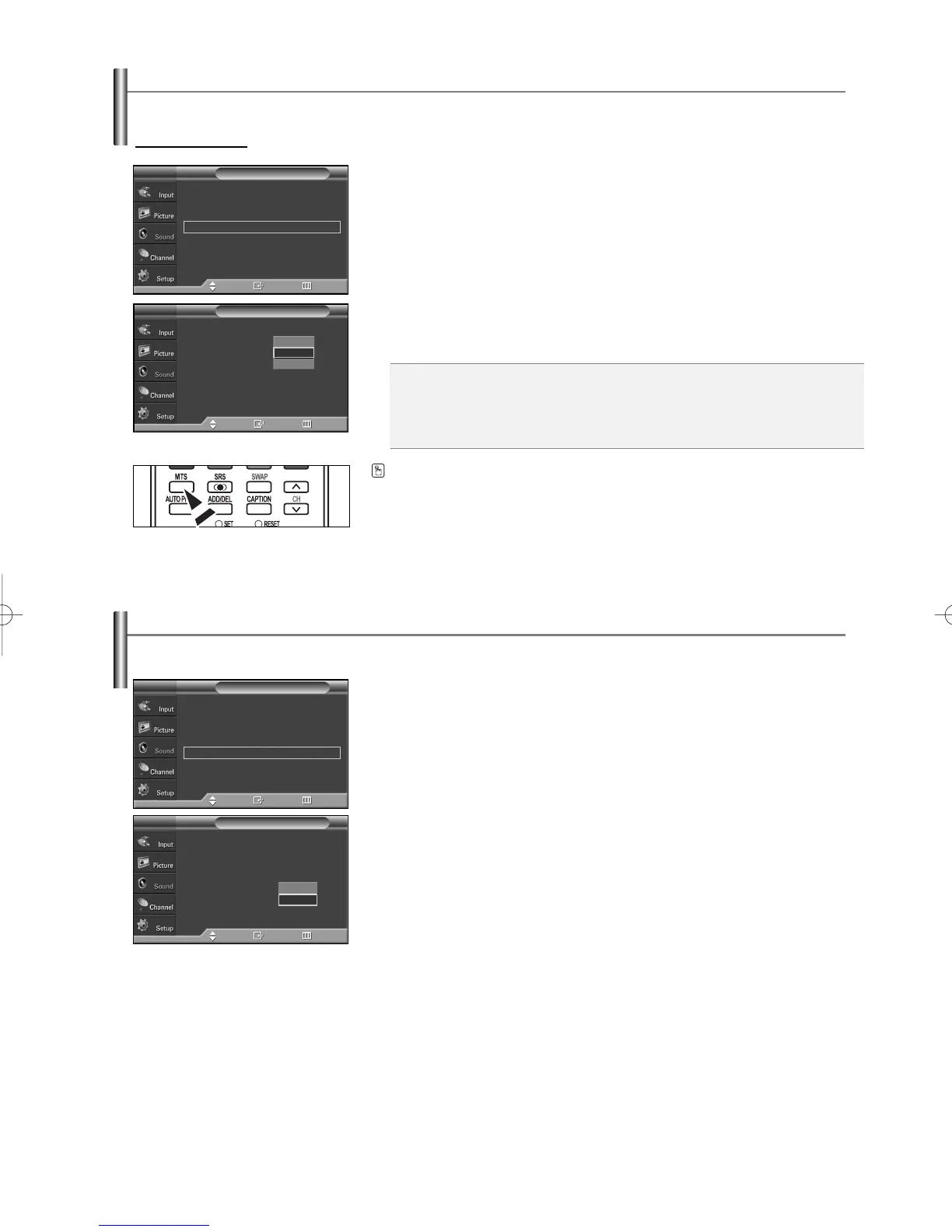 Press the MTS buttons on the remote control to select “Mono”, “Stereo”, or “SAP”.