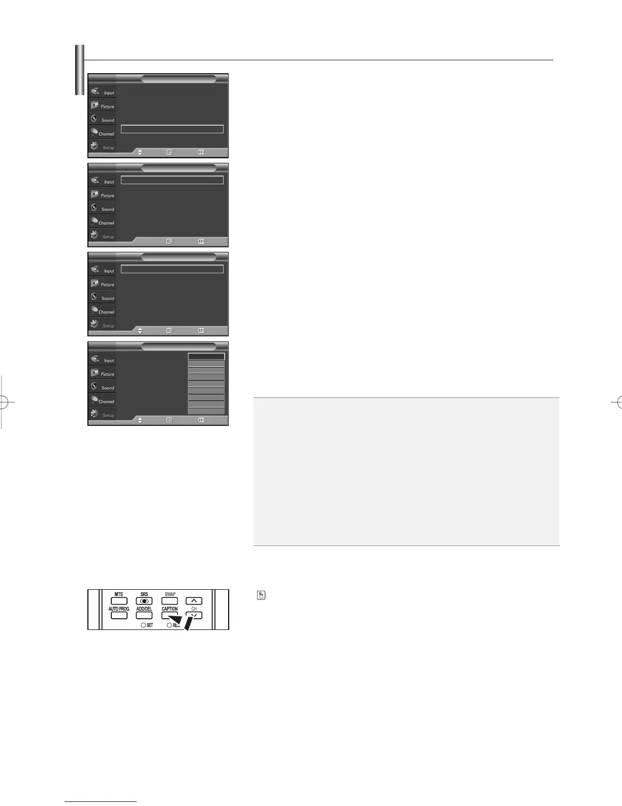 Viewing Closed Captions (On-Screen Text Messages) - Analog