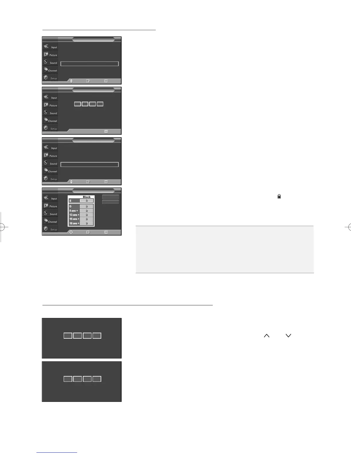 If the TV is tuned to a restricted channel, the V-Chip will block it. The screen will go blank and the following message will appear: