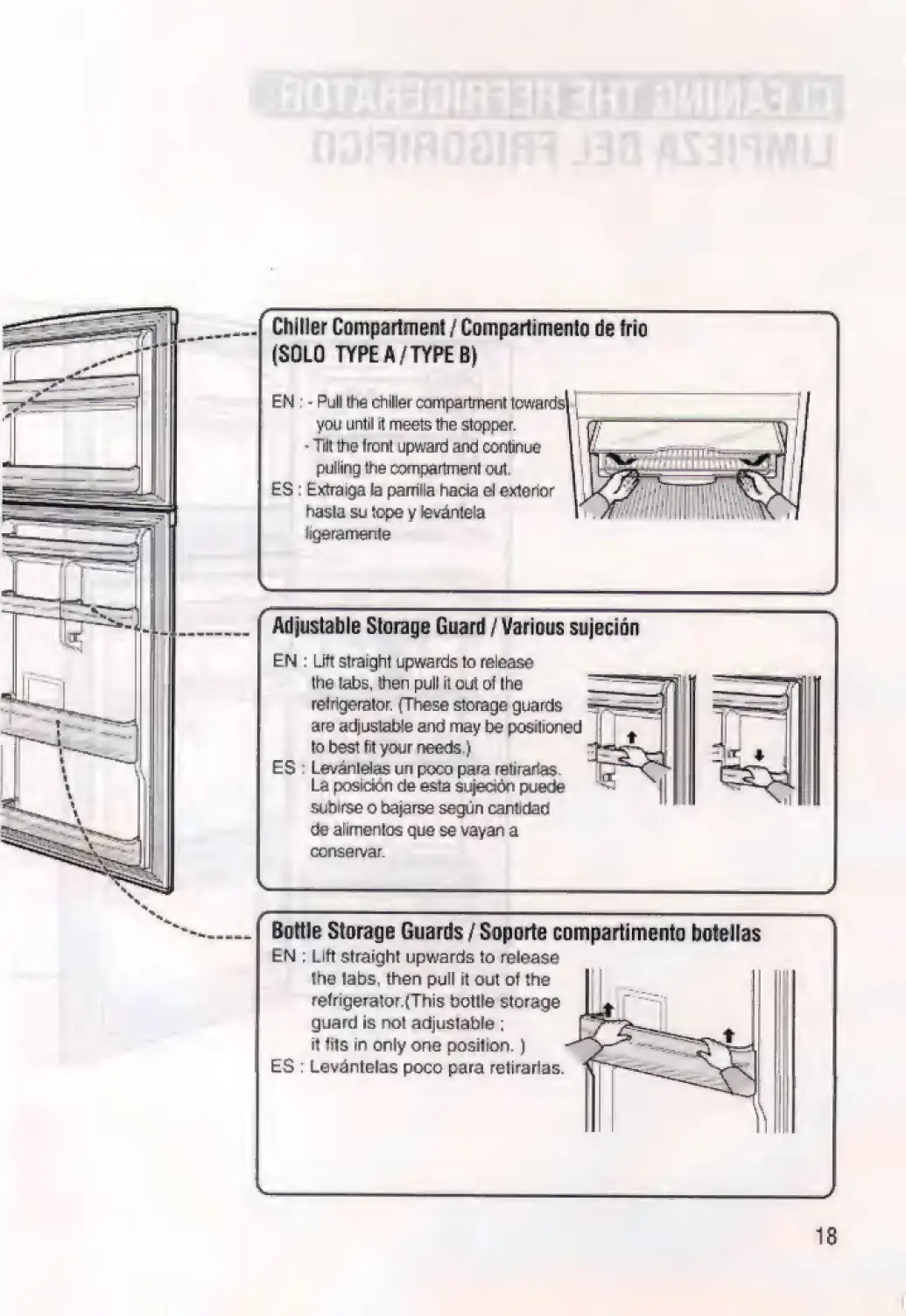 Samsung SR-28 - Remove chiller compartment; Remove adjustable storage guard; Remove bottle storage guards