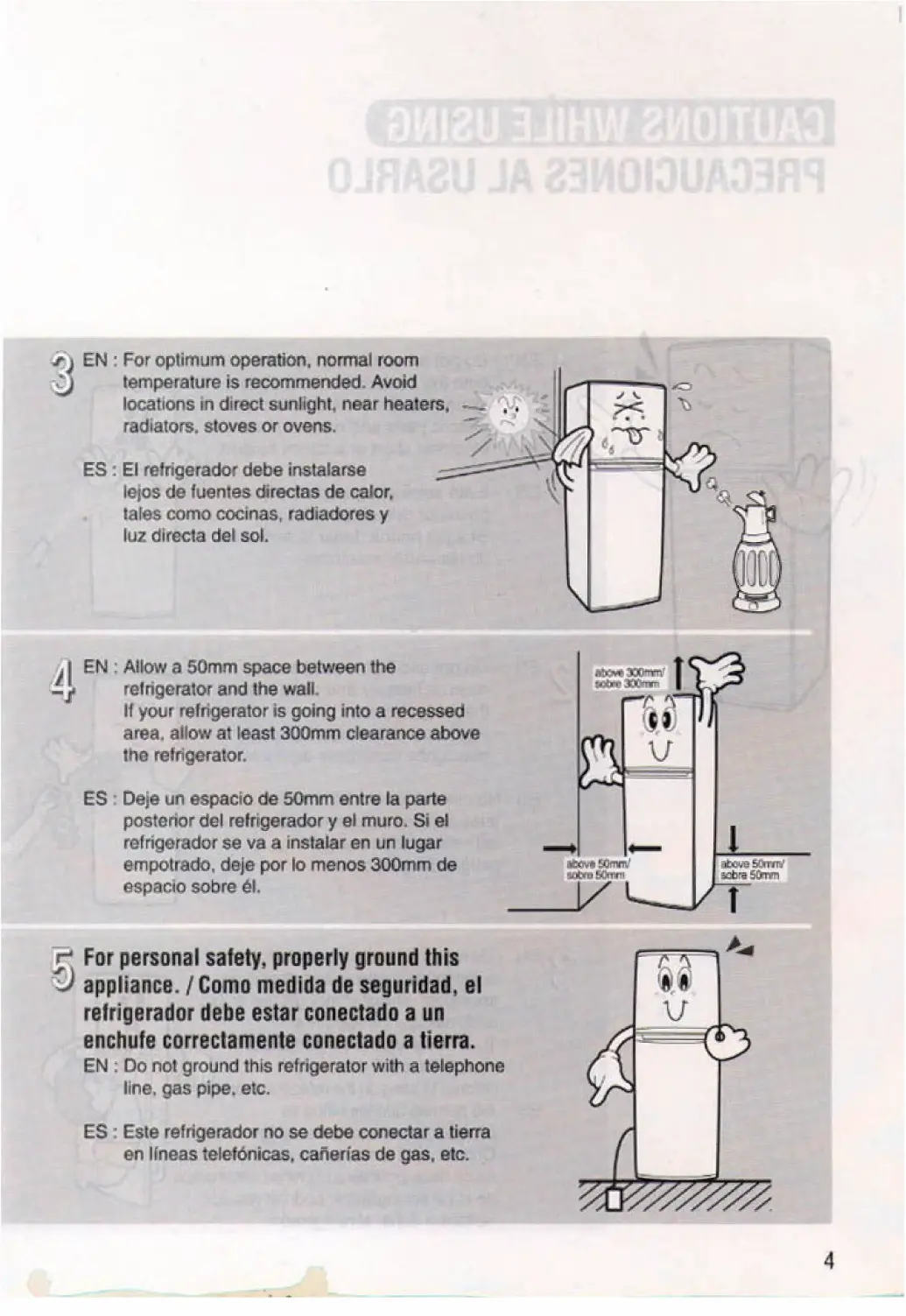 Samsung SR-28 - Avoid direct sunlight, heaters; Maintain proper clearance; Ground the appliance properly