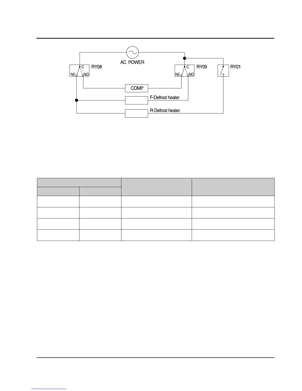 defrosting heater relay, Ry77, Ry71. When those relays are off state Comp and defrosting heater are also