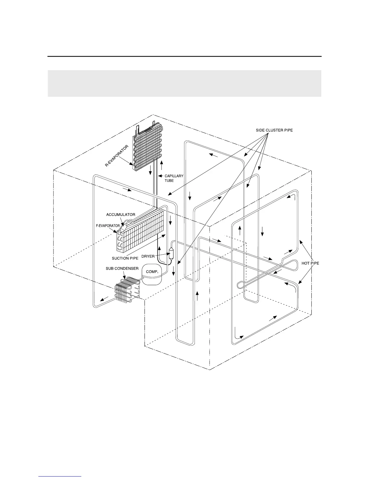 Compressor Sub condenser Cluster pipe Hot pipe Dryer Capillary tube