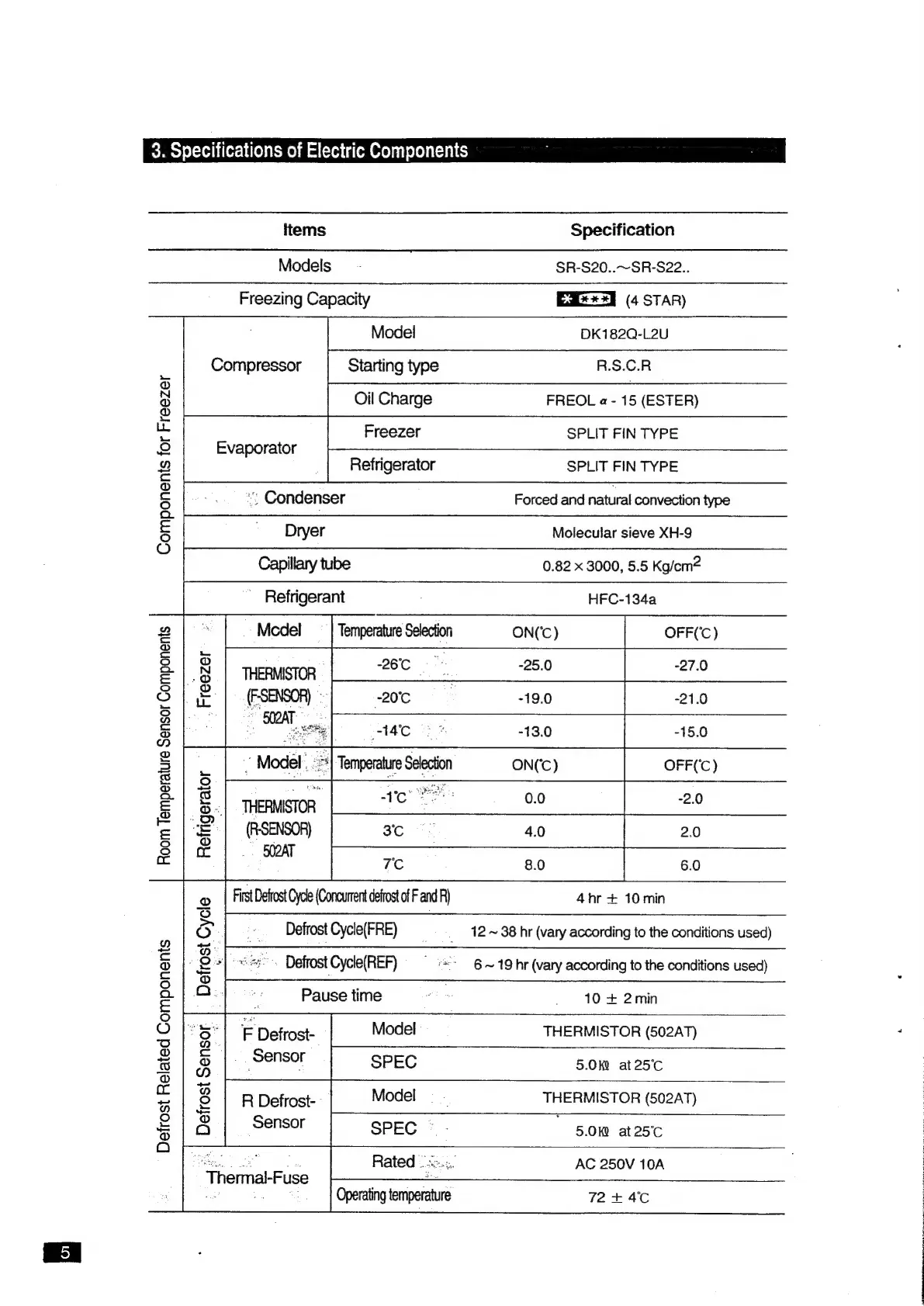 Samsung SR-S22FTC - Specification of Electric COMPONENES Oestrone