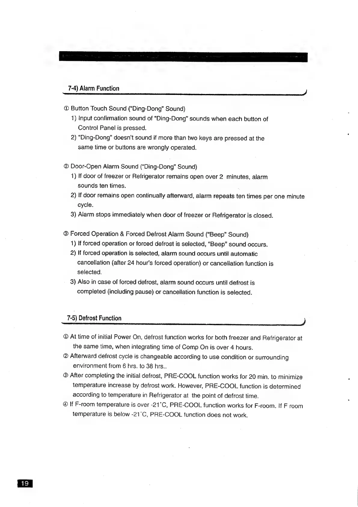 Samsung SR-S22FTD - Alarm Functions; Defrost Function