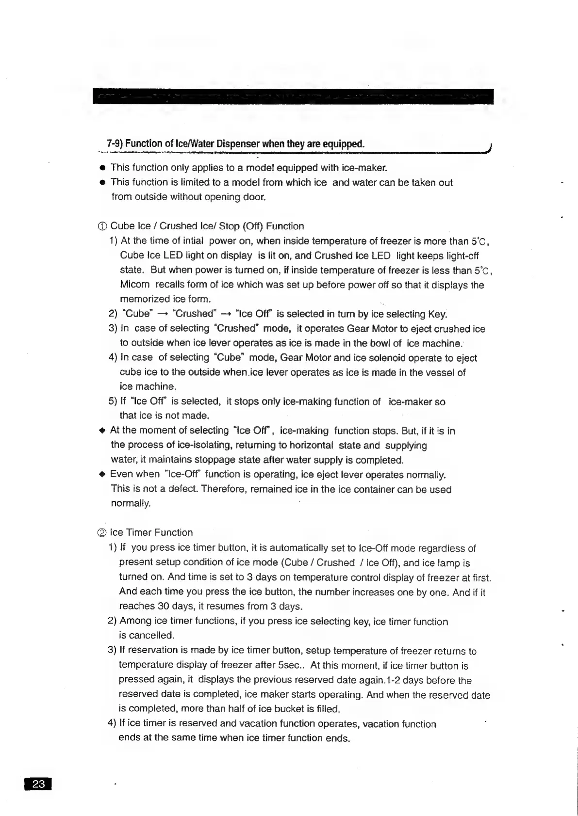Samsung SR-S22FTD - Ice;Water Dispenser Functions