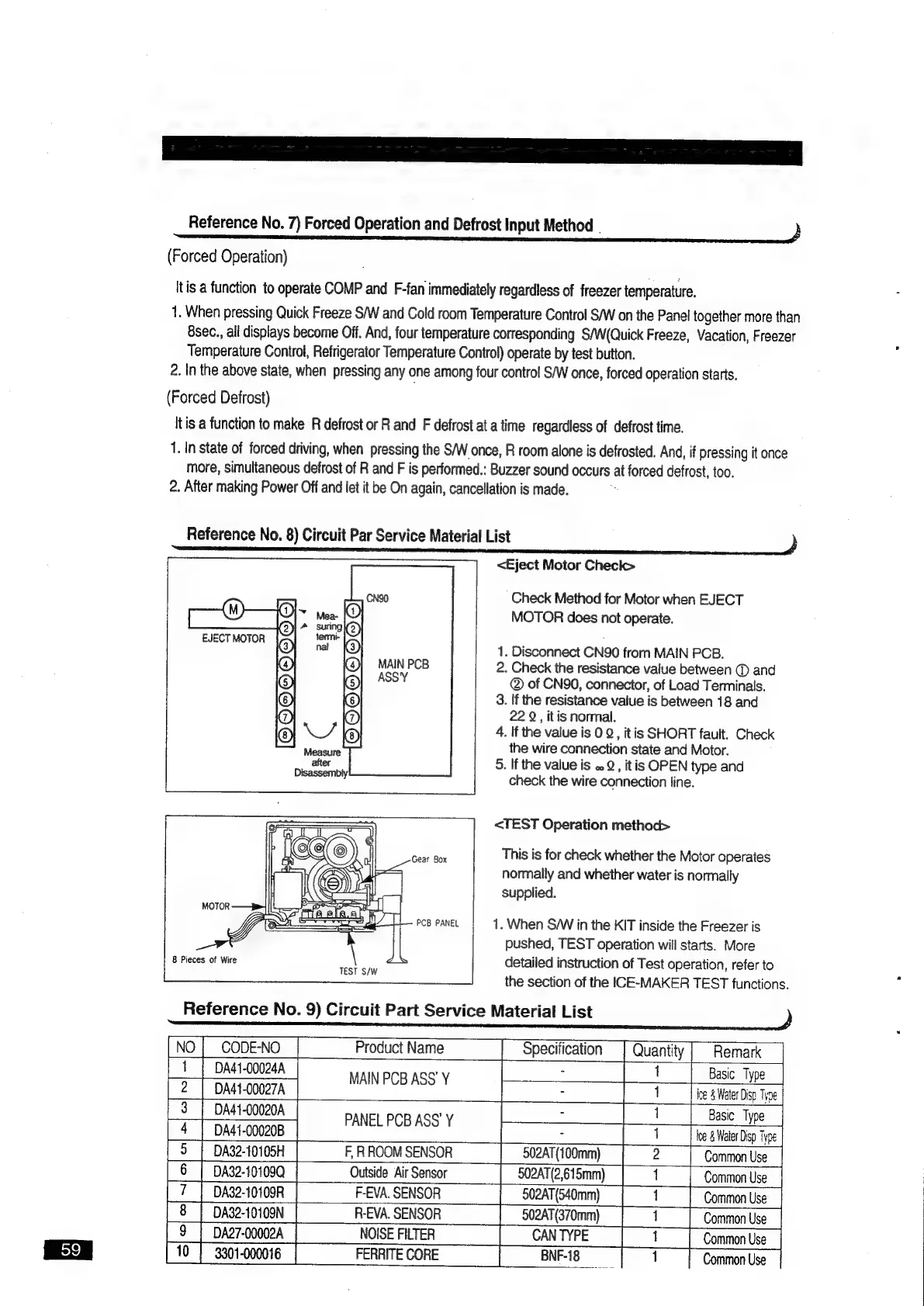 Samsung SR-S22FTD - Forced Operation and Defrost Input Method