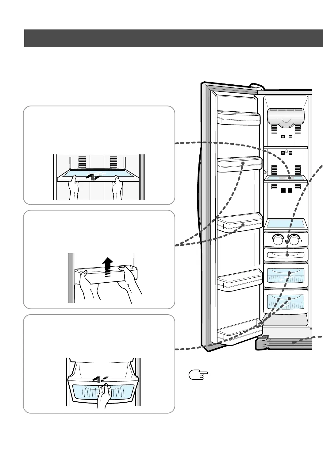 • Grab multiple guard and door shelf by both hands,