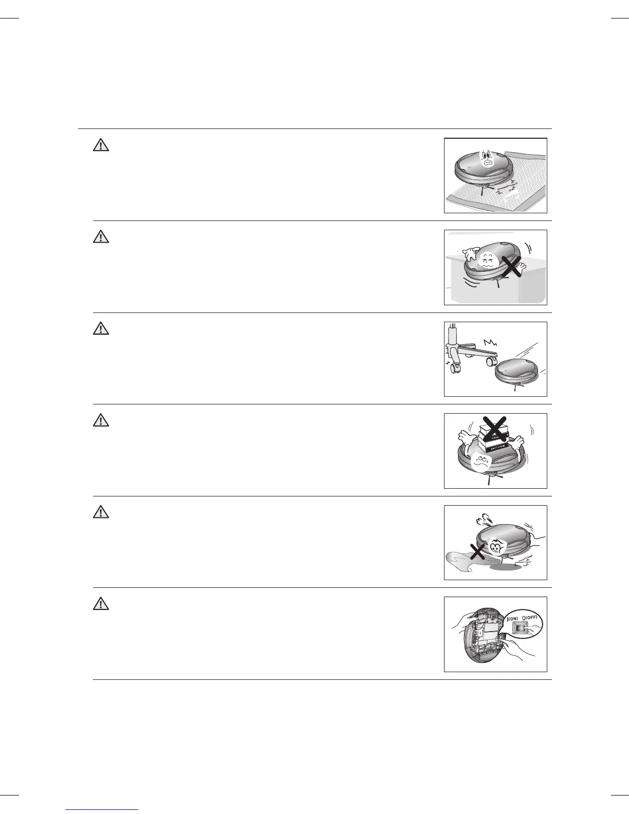 Do not place any objects on top of the vacuum cleaning robot.
