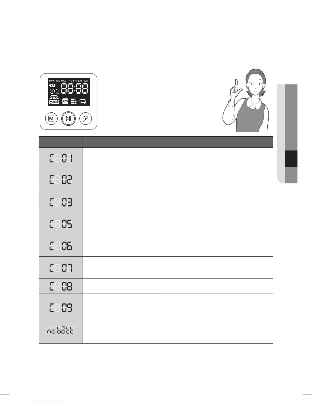 • Dust bin not inserted. • Insert the dust bin until you hear a “Click”