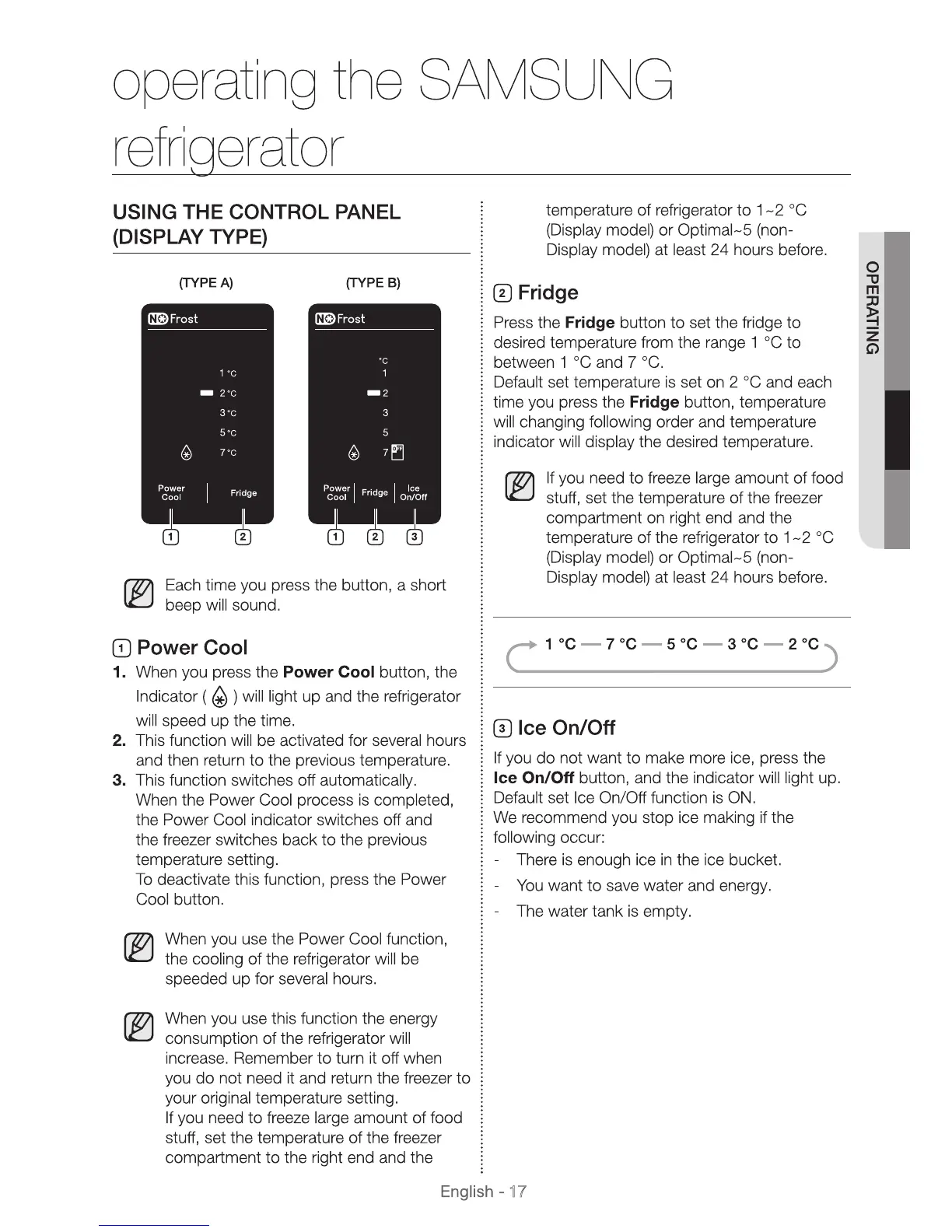 Samsung SR392MWR - Operating the Samsung Refrigerator; Using the Control Panel (Display Type)