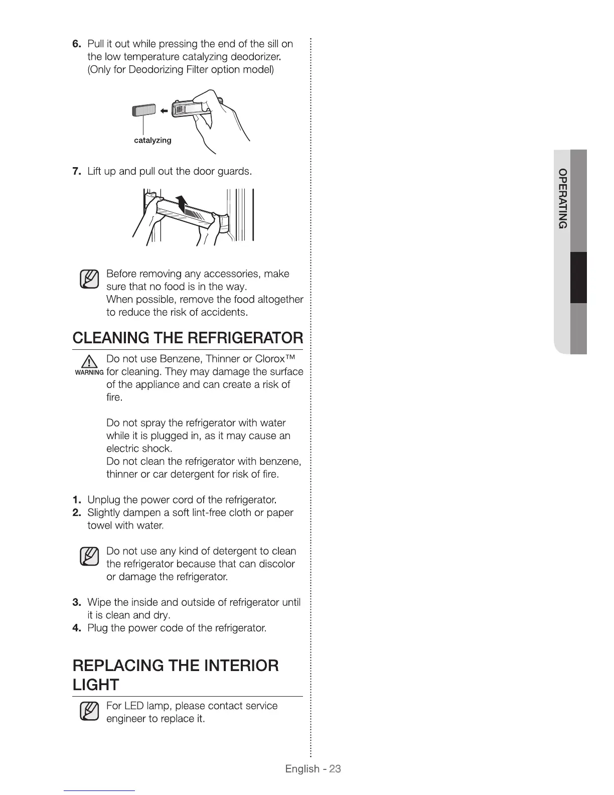 Samsung SR392MWR - Cleaning the Refrigerator