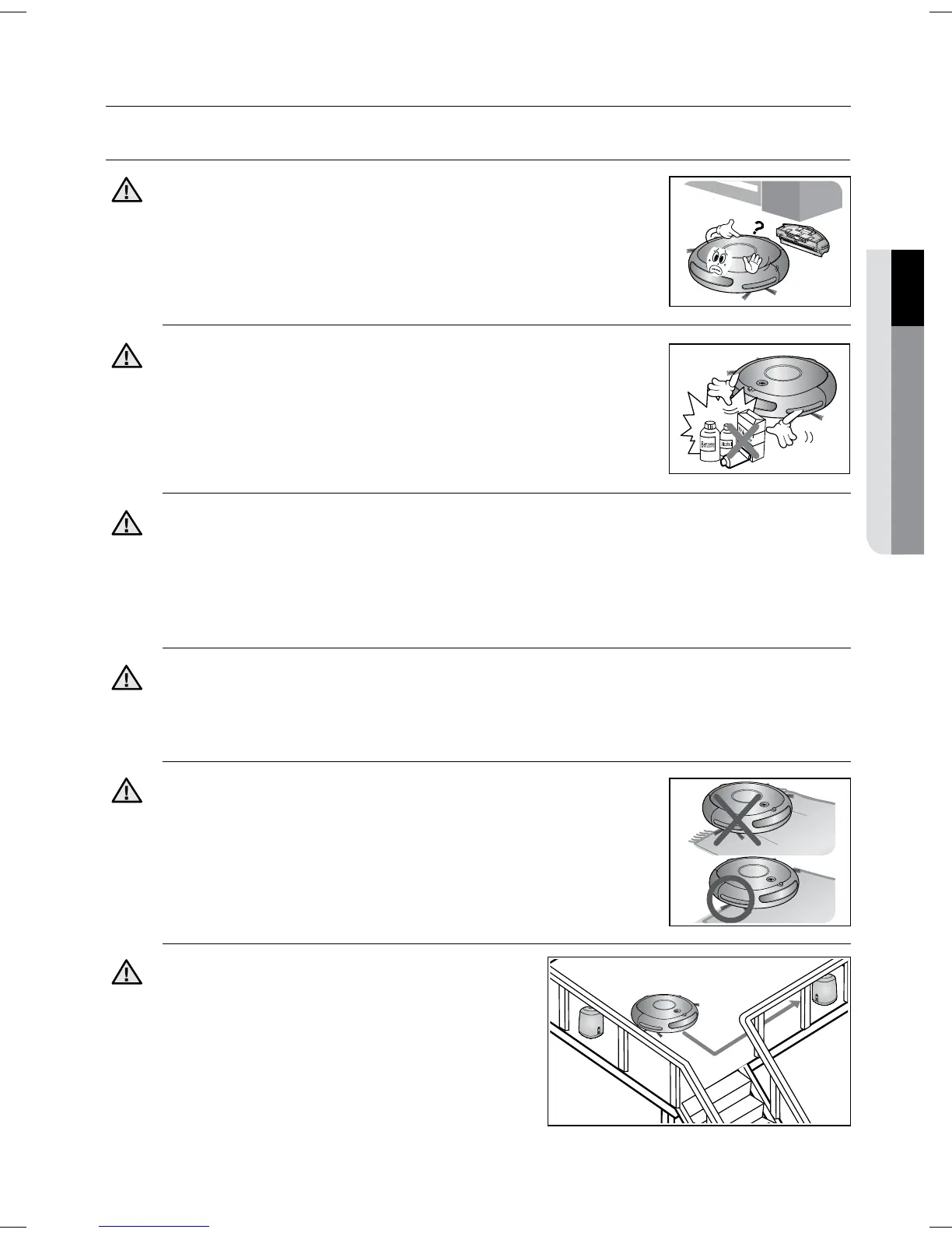 Never use robotic vacuum cleaner in locations with