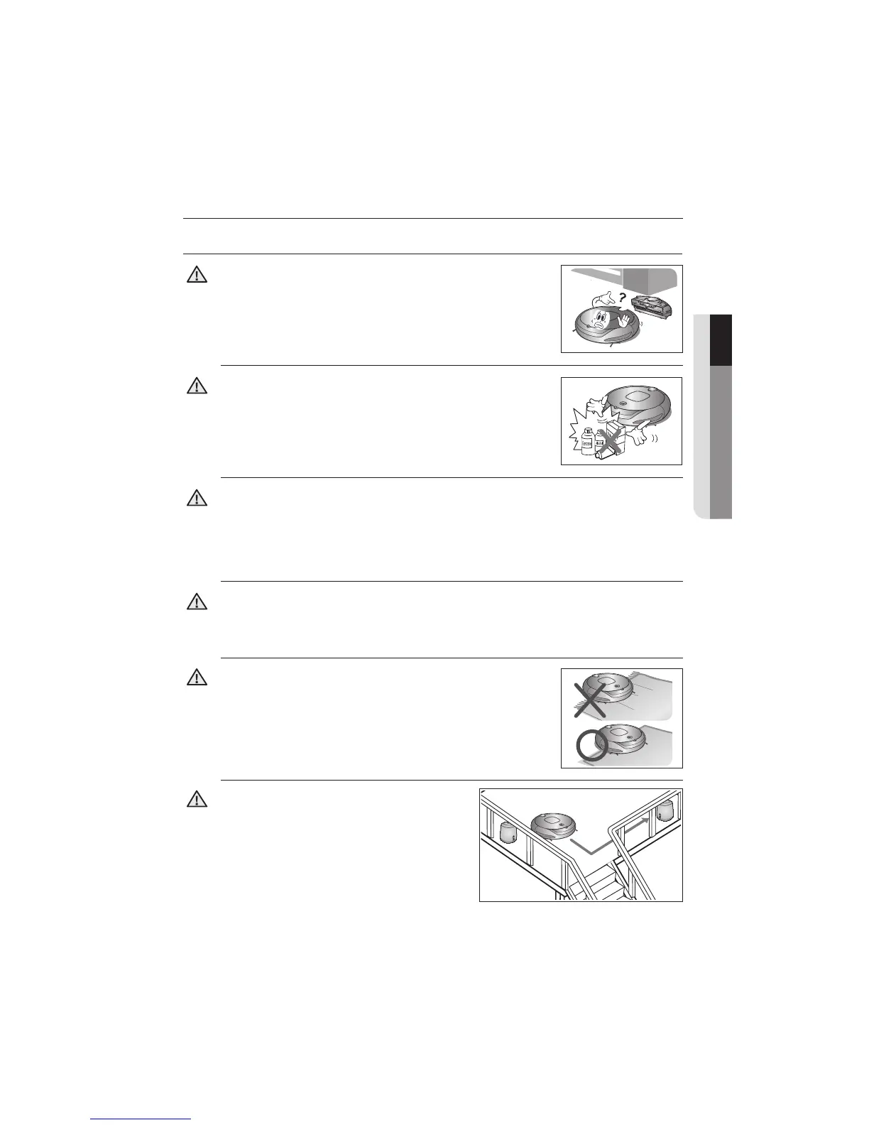 Never use robotic vacuum cleaner in locations with