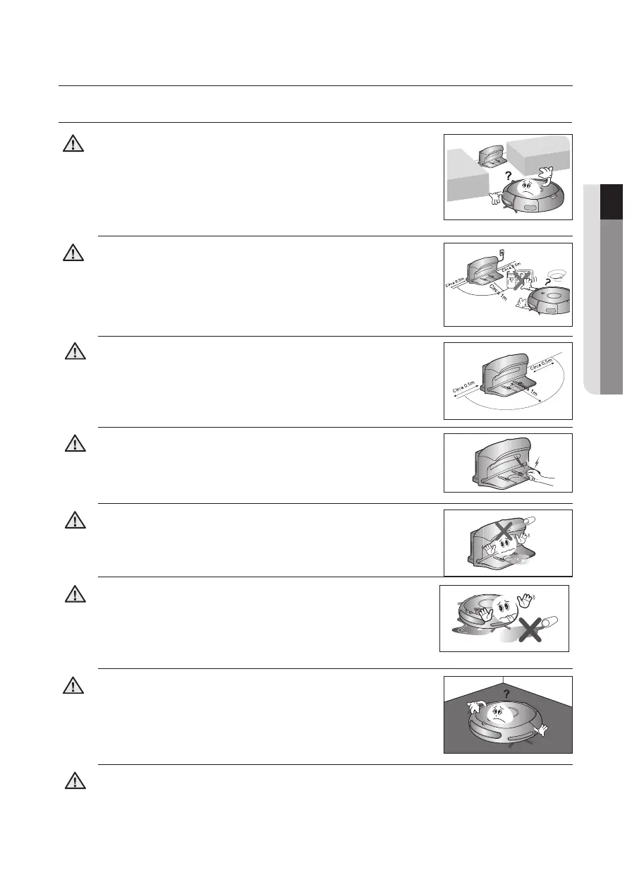 - Se la base di ricarica viene posizionata in un angolo, ciò può