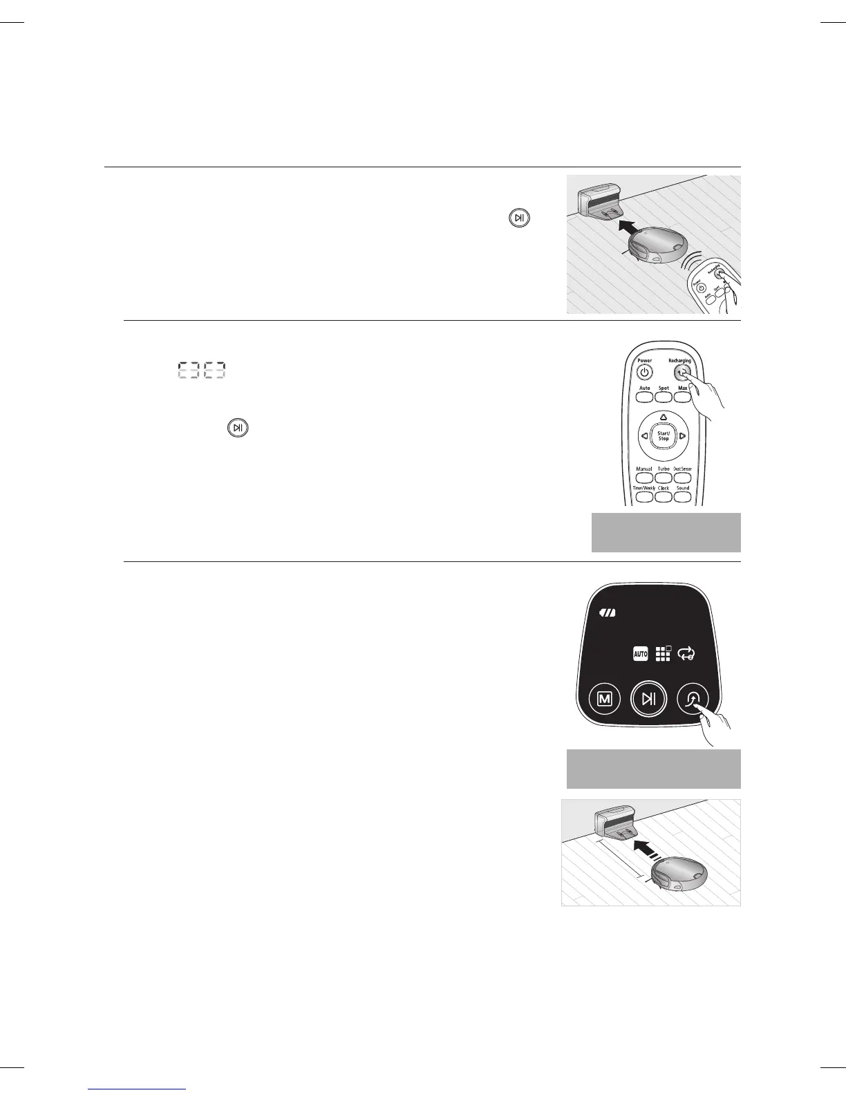 You can have the vacuum cleaning robot return to the charger