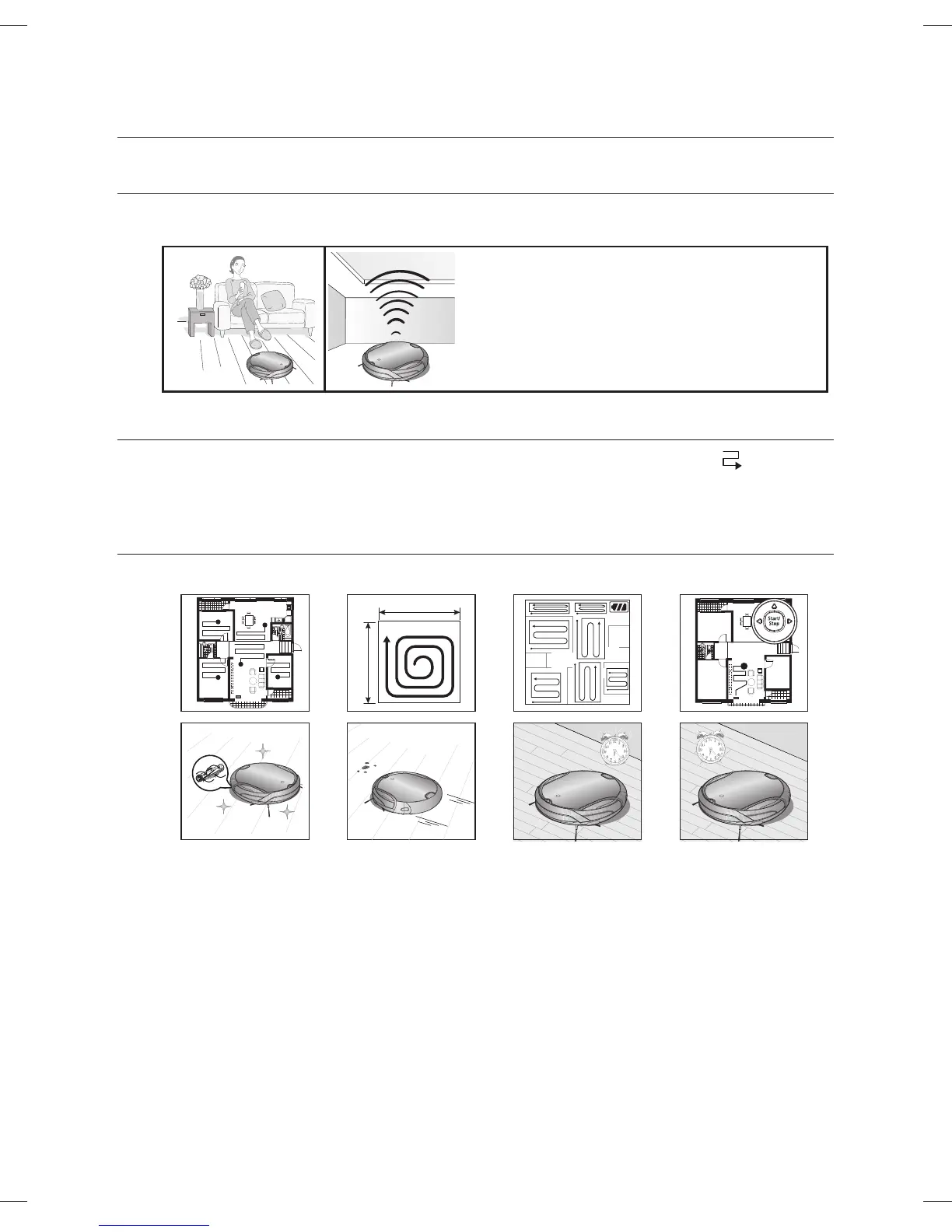 Modalità Timer:7. All’ora impostata, il robot aspirapolvere inizia a pulire il pavimento.