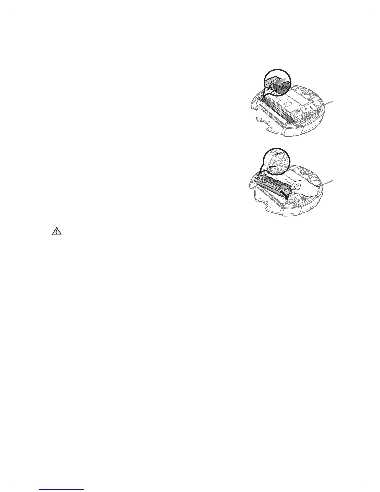 Da die Saugbürste den Staub vom Boden aufnimmt, können sich lange Fäden oder Haare um •