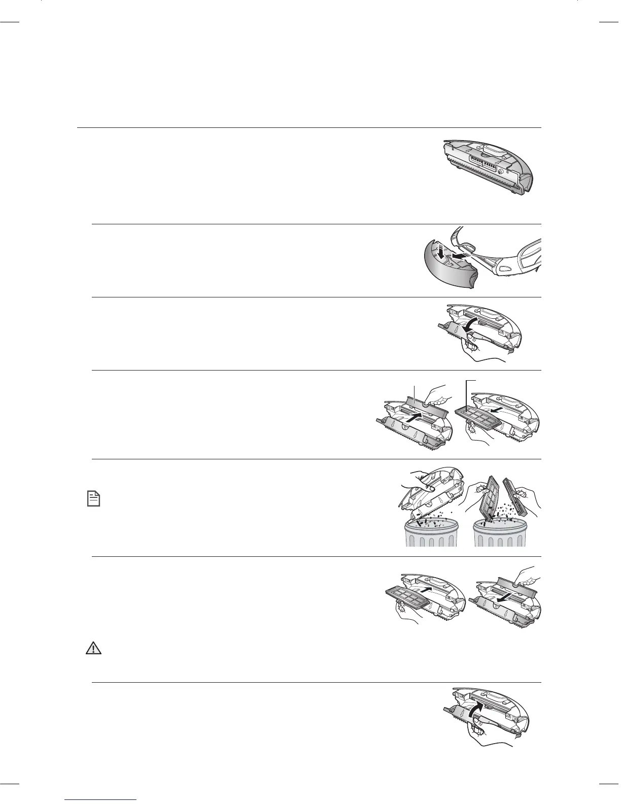 Reassemble the fi lter and mesh fi lter onto the dustbin.5.