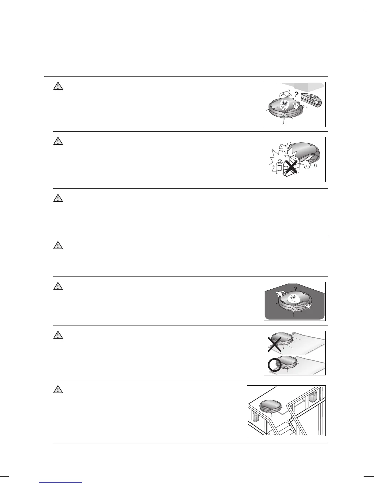 Robot vacuum is for domestic use only. Do not use it in the following locations.