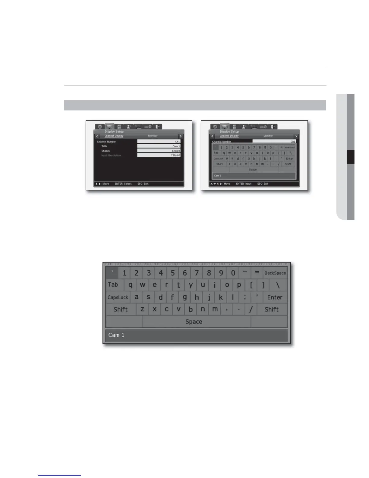 1. If you want to change the camera title, DVR name or user ID/password, use the virtual keyboard.