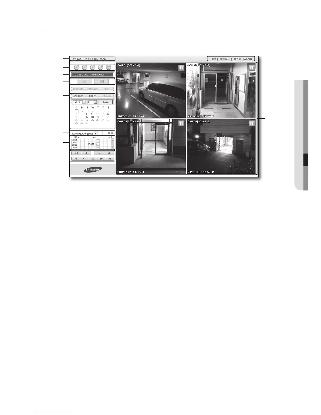 b These menus consist of <LIVE>, <SEARCH>, <SETUP>, <ABOUT>.