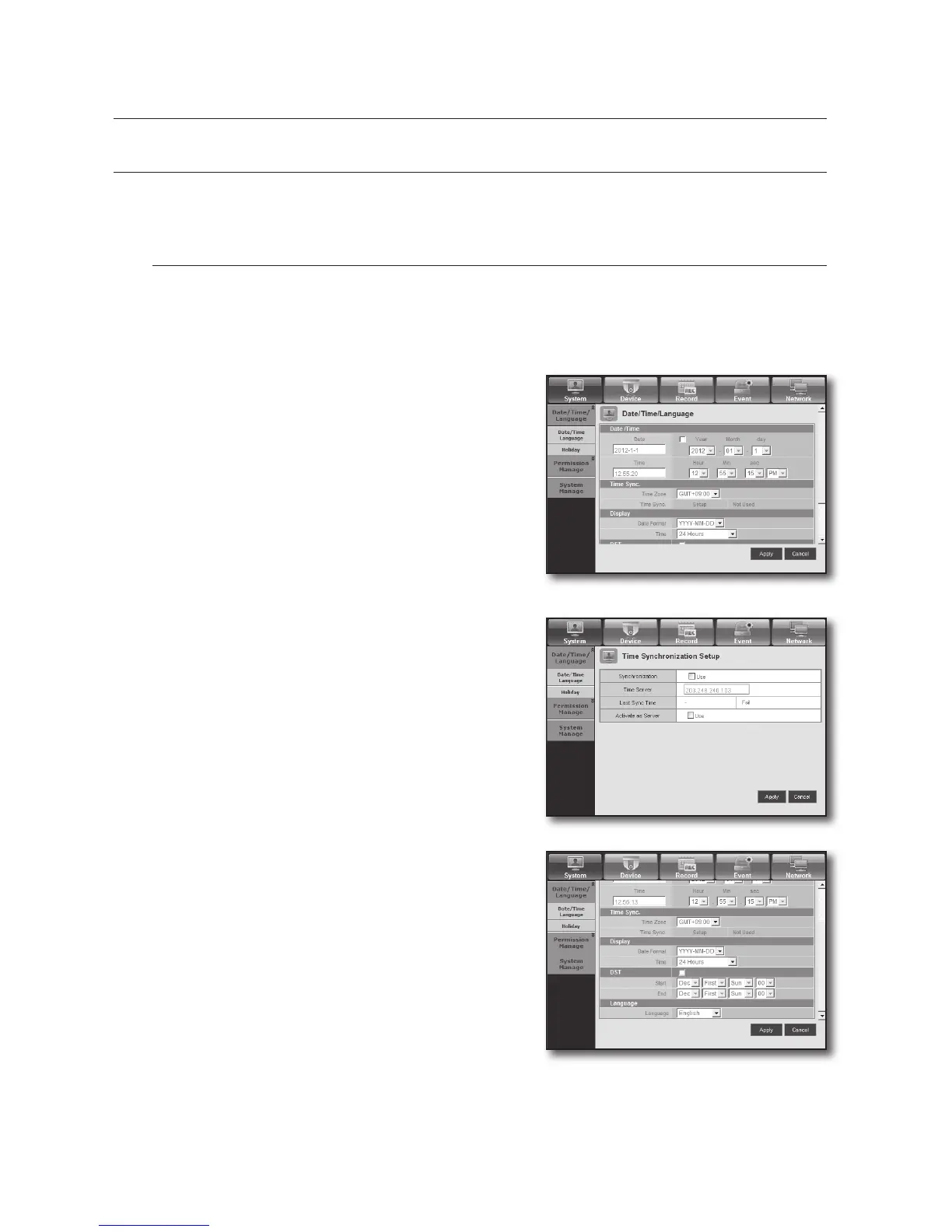 1. Select <Date/Time/Language> in the System menu.