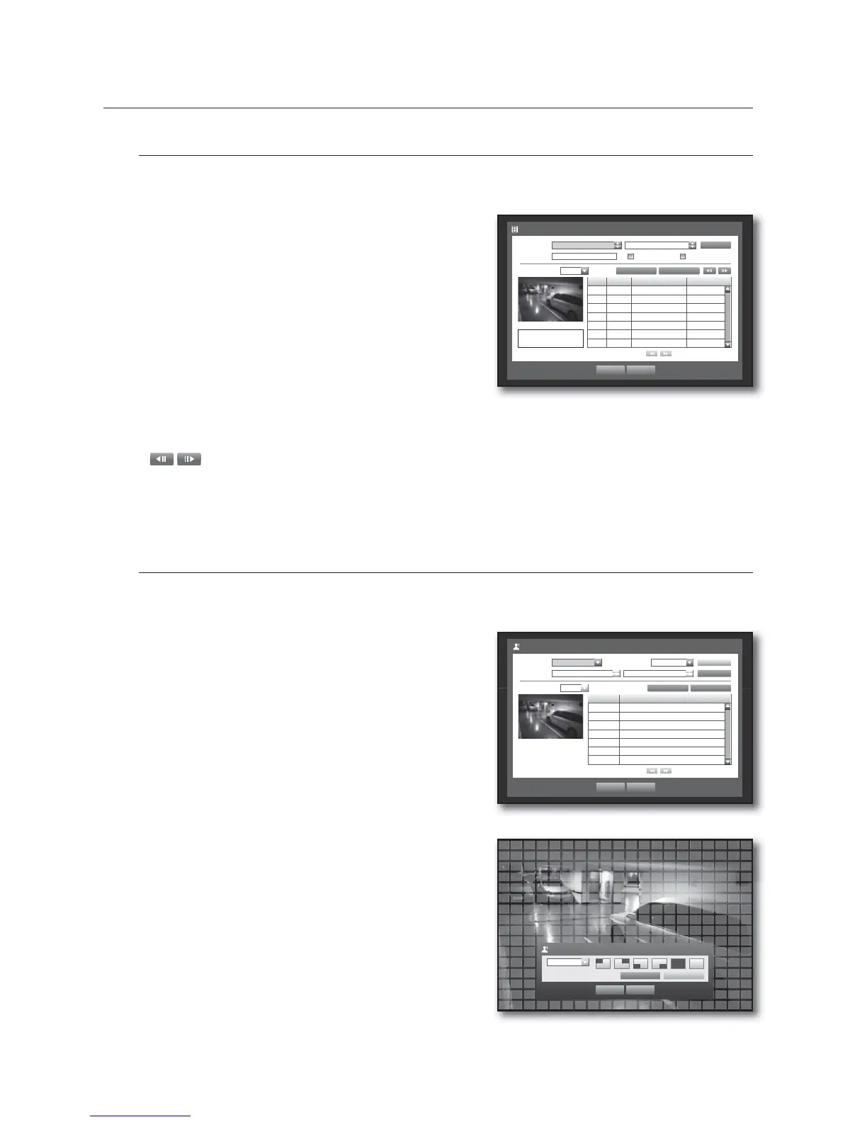 If a motion is detected in each channel, you can set a desired area to perform the search.