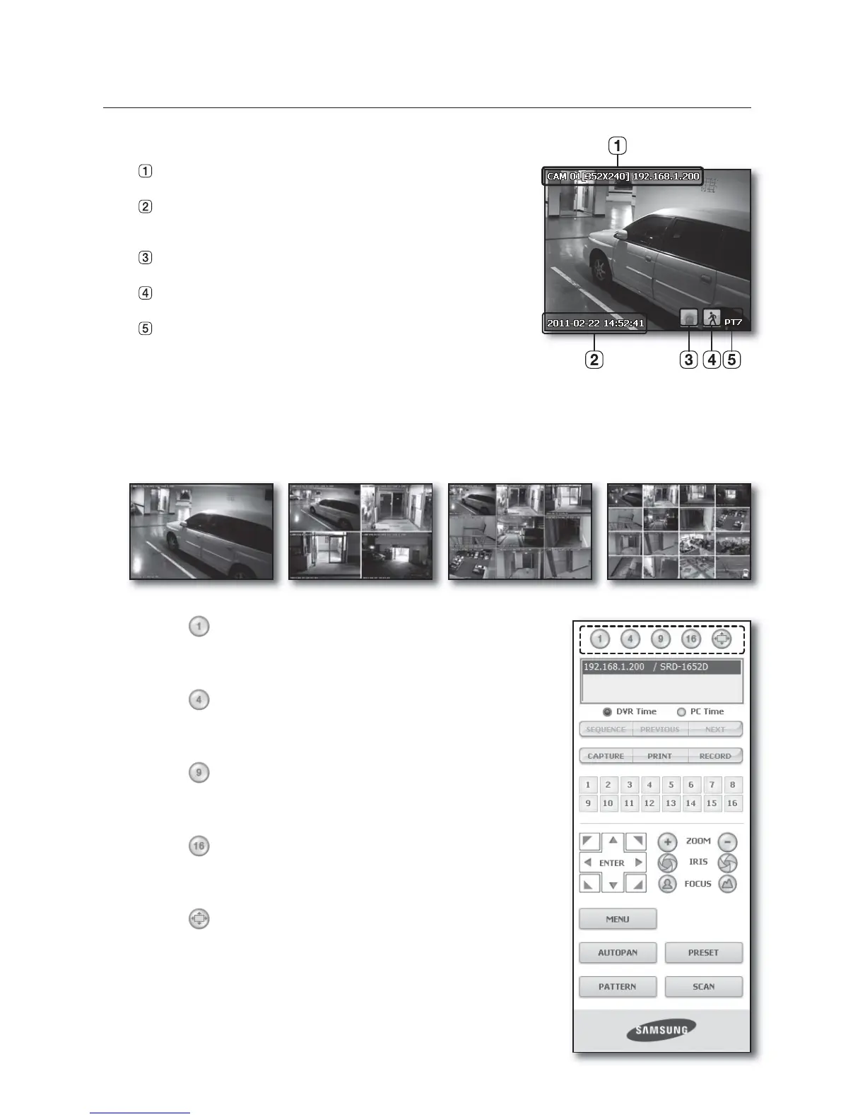 If you have set PTZ cameras for the DVR, “PTZ” is displayed on the