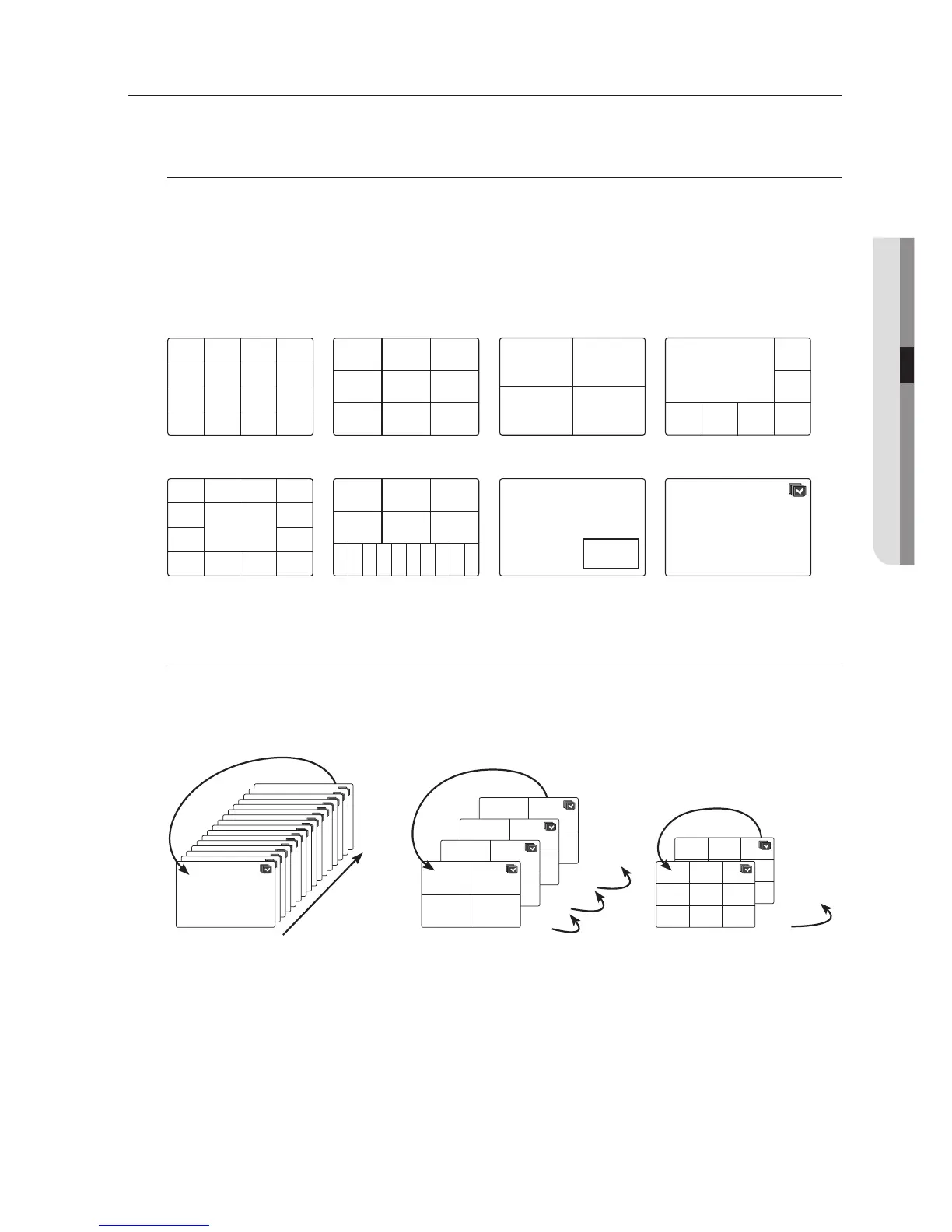 SRD-1653D/1673D display 16 Live images in the sequence of Single, 4-split and 9-split modes.